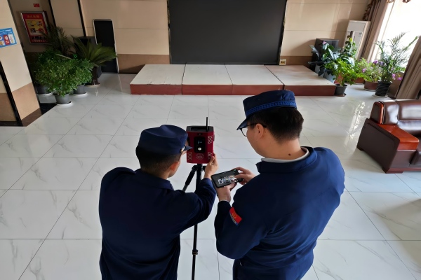 实操教学环节,大队遵循“理论铺垫—示范操作—分组实训—答疑解惑”的流程,逐步拆解设备使用步骤。从现场点位选址、设备固定校准,到一键启动360°扫描、数据同步传输,再到三维模型生成与物证标注分析,每一个操作细节都进行手把手指导。“大家注意,选取采集点位时要避开遮挡物,转换点位时要做到视觉连续,这样才能让摄像头捕捉融合出高清全景,为后续建模提供完整数据支撑。”讲解人员一边演示,一边讲解操作要领,并针对受训人员提出的“如何提升模型采集速度”“设备功能使用技巧”等问题,结合模拟火灾场景逐一演示解答。