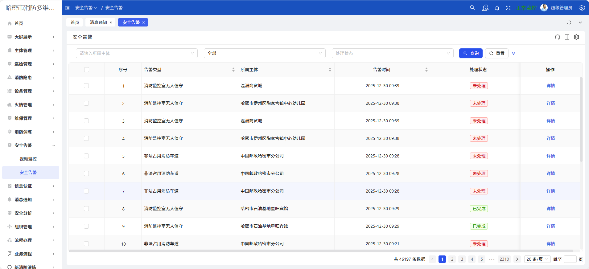 哈密市伊州区大型商业综合体和80%以上的重点单位均已完成模块部署,针对伊州区内32家重点单位消防控制室开展智能化监管。在为期3个月的试点应用中,系统累计监测到脱岗事件27起,均实现30秒内预警推送,巡检人员平均到场处置时间较传统模式缩短60%。
