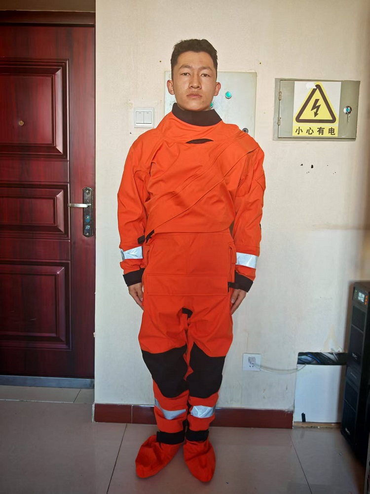 干式水域救援服由应急管理部天津消防研究所研发,依托中央级事业单位基本科研业务费项目“冰上/水域救援防护装备的改进及应用示范”(2021SJ06)。该装备专为我国消防救援实战需求设计,采用自主研发的防水透气复合面料与立体剪裁结构,核心构成涵盖救援服主体、保暖底衣及应急修补工具包,从材质到结构均针对传统水域救援装备的痛点进行优化升级。