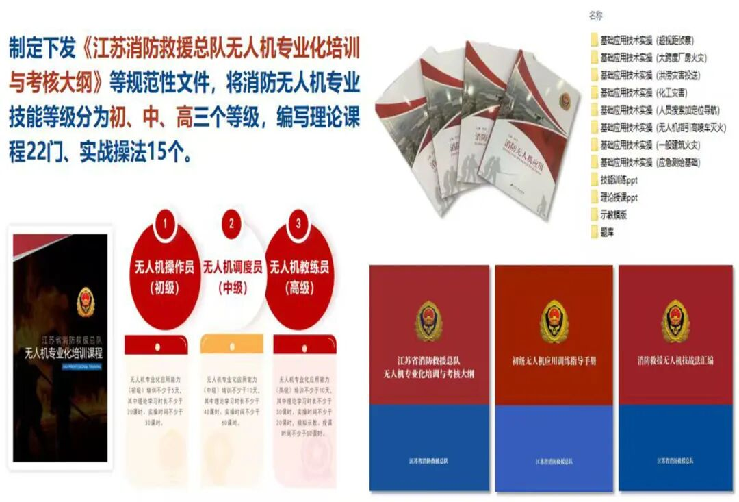 依托连云港徐圩全省无人机实训基地,遴选全省优秀无人机骨干组建师资团队,聚焦大队级初战指挥无人机实战应用需求,内容全面覆盖大队级飞手所需岗位技能,以无人机基础理论、技能训练为基础,针对建筑、化工火灾处置、人员搜救、自然灾害救援等典型灾害处置场景,重点培养飞手热成像应用、搜救定位指引、制图标绘等实战应用能力,着力锻造快速响应、技能娴熟的无人机专业尖兵队伍,对标“全灾种、大应急”职能定位和岗位履职要求,建设省级无人机实训基地、编撰配套培训教材、编制训练操法、组建高水平师资队伍,科学构建覆盖初、中、高三个等级无人机专业化应用培训考核体系。设置了无人机基本构造、飞行原理、空管法规、飞行安全知识,航拍技术等基础理论知识和无人机穿越障碍、远程喊话、红外测温、区域航拍、盲区侦察、精准抛投、超视距规划飞行、测绘无人机二维正射影像、三维建模、灾害影像对比图、力量部署图等实操科目,此次培训覆盖全省13个消防支队、111个基层大队,共计148名基层队站无人机飞手。针对学员飞行基础参差不齐的实际情况,创新采用“小班化+差异化”分组教学,实现培训精准化。通过阶段性考核评估学员水平,动态优化分组与课程配比,确保为各基层大队至少培养1名专业化无人机业务骨干,开展理论实践模拟考试,考试通过进入下一环节学习,真正促进参训学员“学一章过一章”。