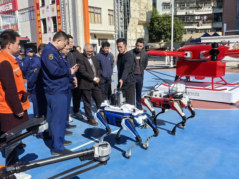 活动围绕消防通信装备融合通信网关、双光图传、侦察机器狗、各类型无人机等科技成果开展了示范观摩及技术交流。肯定了消防通信装备接口丰富、应用简便、充电效率高的优点,提出了进一步优化集成设计、减小体积、降低重量的意见建议;讨论了各类型无人机在地震、洪涝等自然灾害,森林草原火灾,重大城市火灾以及安全生产事故中的适用场景,演示了侦察机器狗的行走动作灵活、侦察图像回传和智能操作等优越性能。交流活动中各单位人员集思广益、畅所欲言,收到了良好的效果。