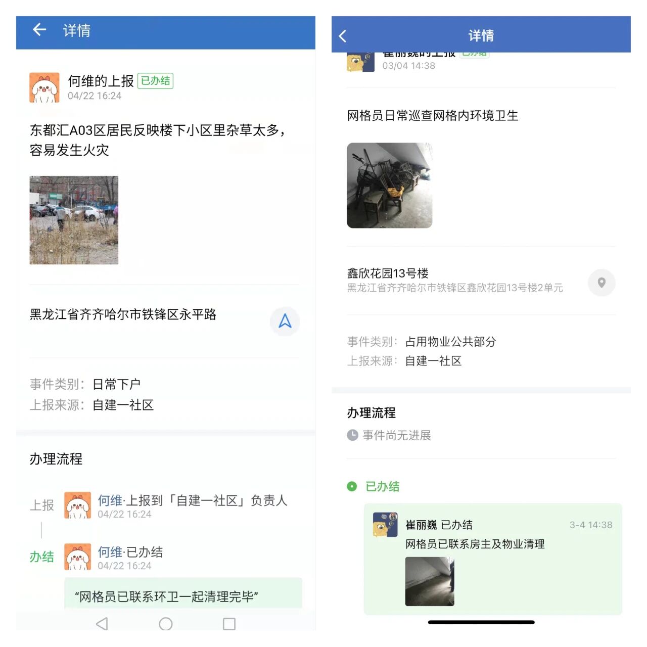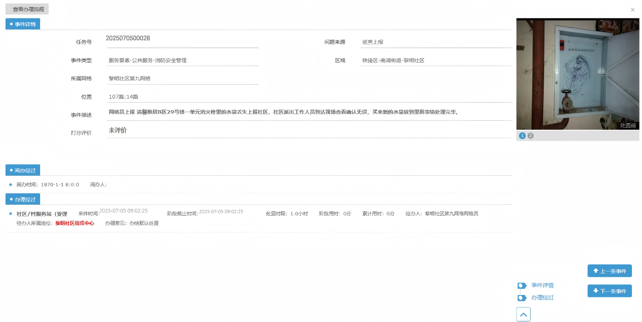 在铁锋区综合治理平台增设消防安全管理模块,按照“社区群众吹哨、街道部门报到”的模式,实现线上发现问题、解决问题。建立问题“三级督改”制度,具体如下:能立即整改的火灾隐患,由检查人员负责督促当场整改;不能立即整改的,上报社区(村)督办整改;拒不整改或涉嫌违法的,上报街道(镇)消防工作所,协调有关部门依法查处。消防工作所通过铁锋在线APP,按照“发现受理、分流处置、跟踪督办、反馈评价”四个环节,对火灾隐患整改的全过程进行监督。