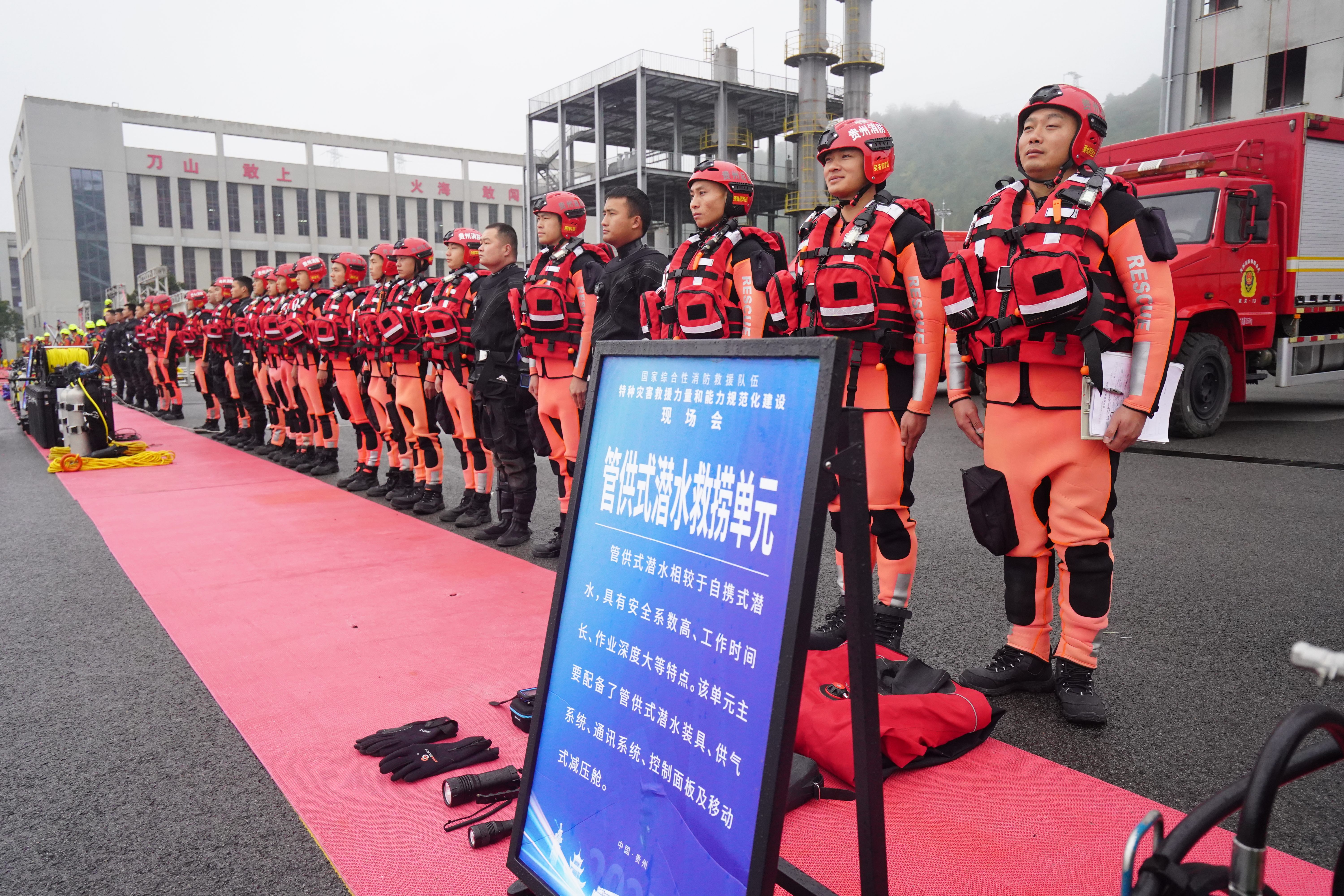 贵州省消防救援总队以国家综合性消防救援队伍特种灾害救援力量和能力规范化建设现场会为契机,开展了特种救援装备观摩交流活动。全省各支队、大队主官,基层队站指挥员,战训、信通相关科处室及新训大队全体指战员共计400余人到场参加。