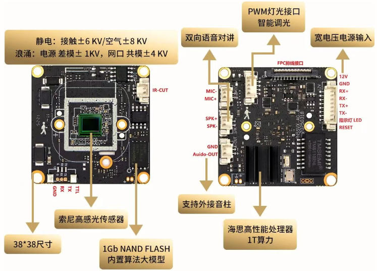 支持声光报警、APP推送、TF卡存储、NVR智能录像、MQTT/HTTP上报等。