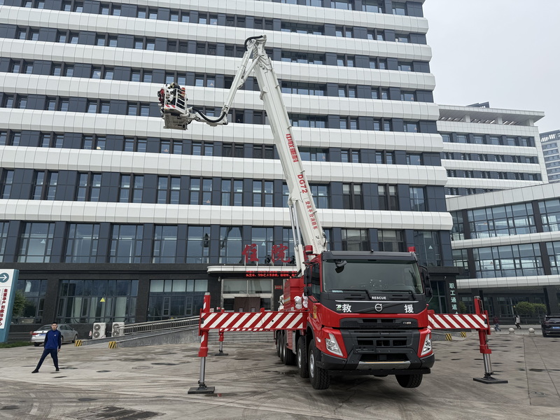 同时,测试通过模拟高层火灾场景,记录平台与底盘回转系统的联动响应速度,确保救援过程中能快速调整作业位置;同时启动车载应急供电系统,测试在主电源中断时,备用电源对平台升降、液压系统及通讯设备的持续供电时长,保障救援作业不中断。